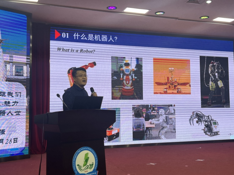 机械工程学院教授李军强在河北工业大学附属红桥中学作《机器人距我们越来越近—魅力无穷的机器人世界》的讲座。随着人工智能和机器人技术发展,李军强介绍了机器人在制造业、医疗、教育等多个领域的应用潜力,以及未来机器人更加智能化、个性化的发展趋势。