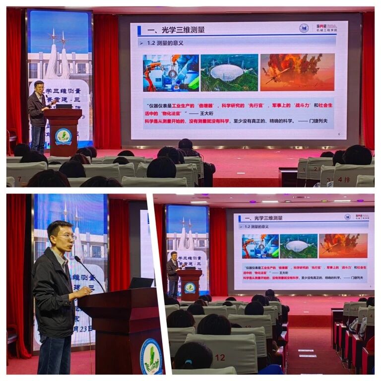 机械工程学院教授孟召宗在河北工业大学附属红桥中学带来《光学三维测量与场景重建—三维数字化技术赋能人工智能应用》。讲座介绍了光学三维测量技术的基本原理、技术方法分类、面临问题和最新进展等内容,该技术在工业检测、装备制造等多个领域具有广泛应用,是智能制造等领域的重要技术支撑。